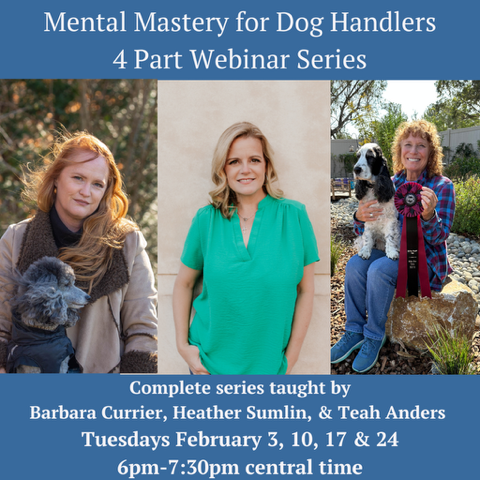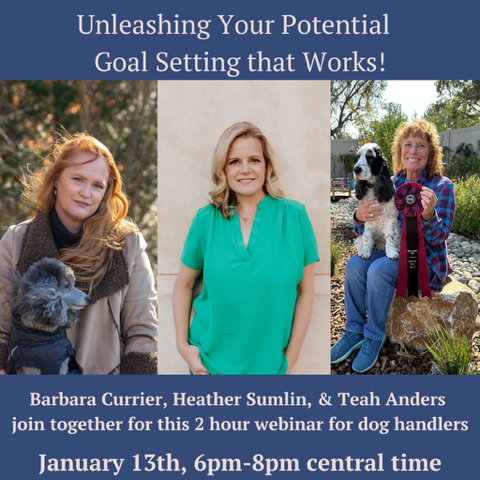 Set and achieve your goals for the new year!  Join Teah Anders, Barbara Currier and Heather Sumlin for a two-hour goal setting seminar specifically for dog handlers.